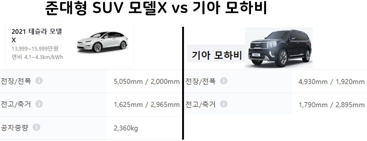 모델X와 기아 모하비 크기 비교 입니다.