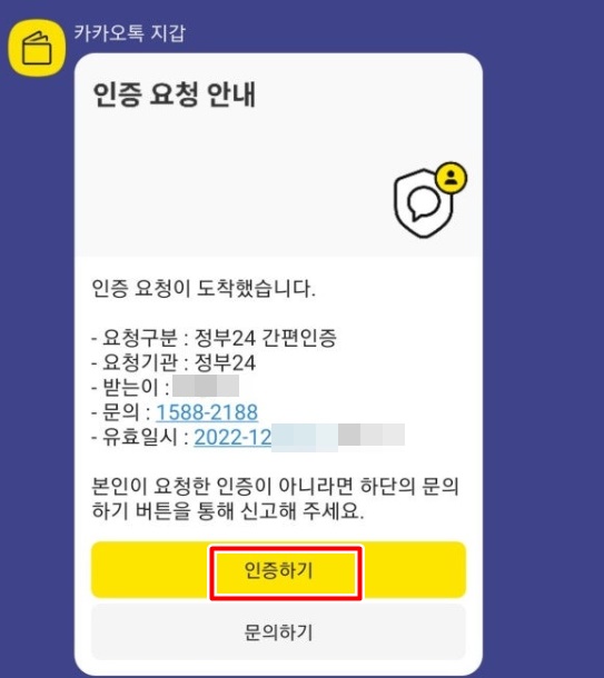 카카오톡을 이용해서 간편인증을 했습니다.